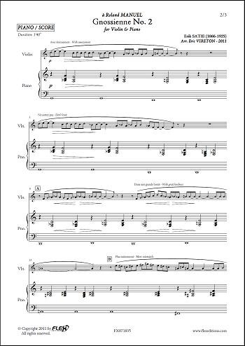 PARTITURA CLASICA - Gnossienne No. 2 - E. SATIE - Violin & Piano PDF Kindle